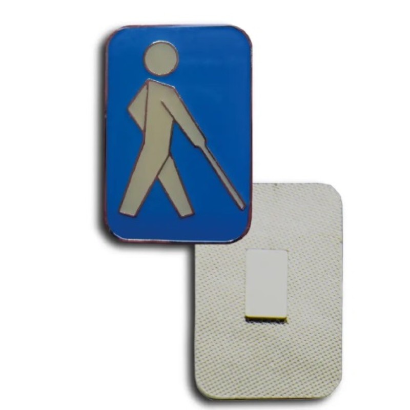 Blindenplakette eckig, blau mit weißem Stockmännchen (Magnet)